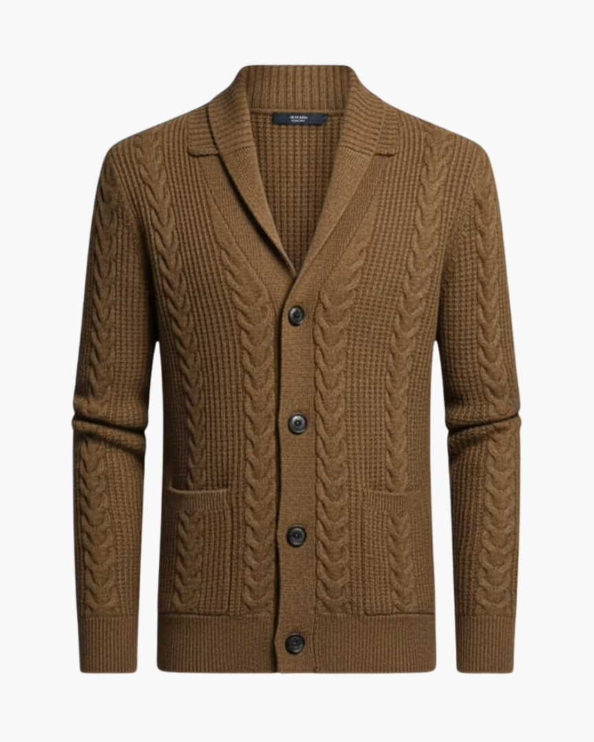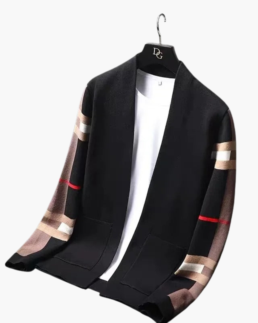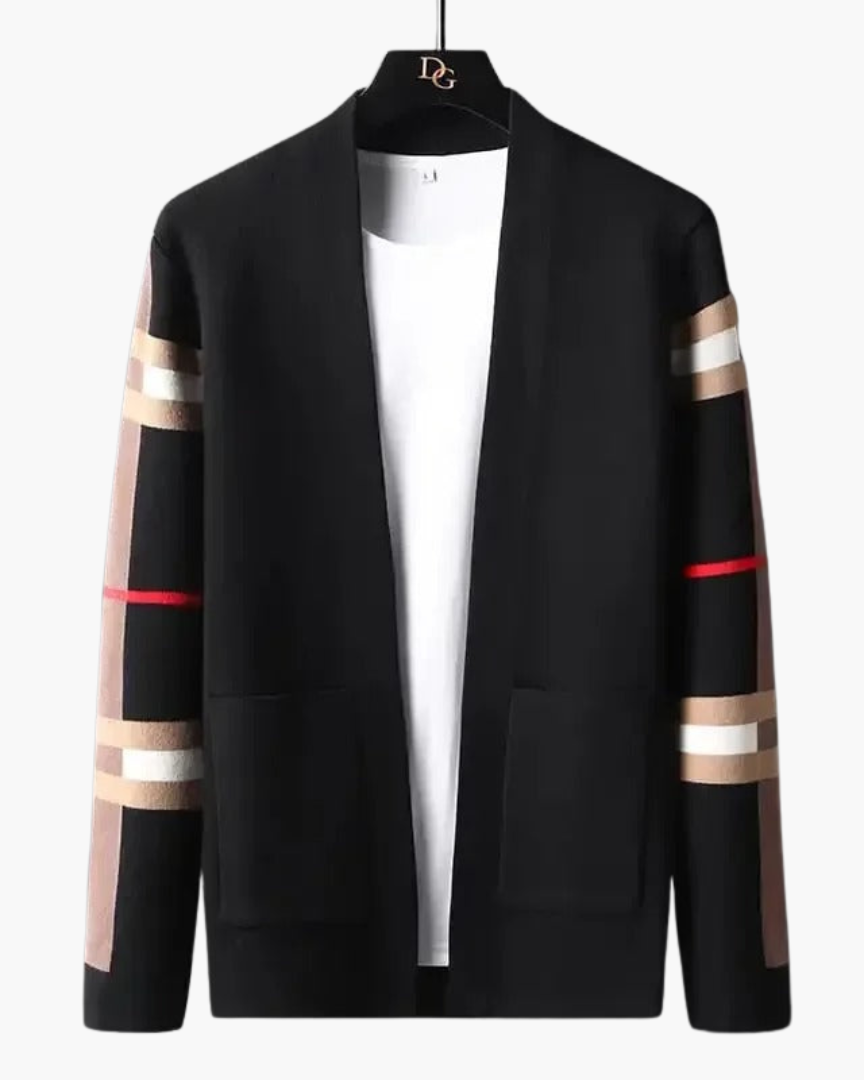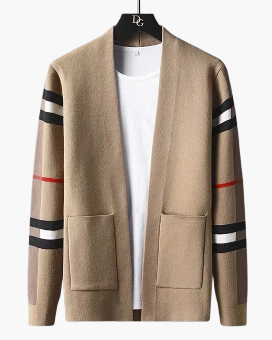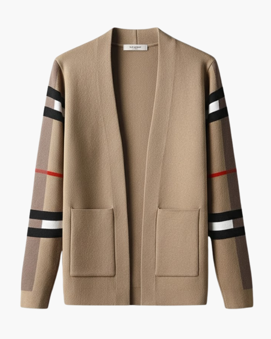 Men's Open Front Cardigan with Structured Stitch Detailing