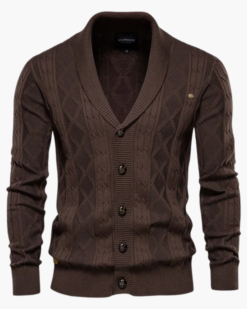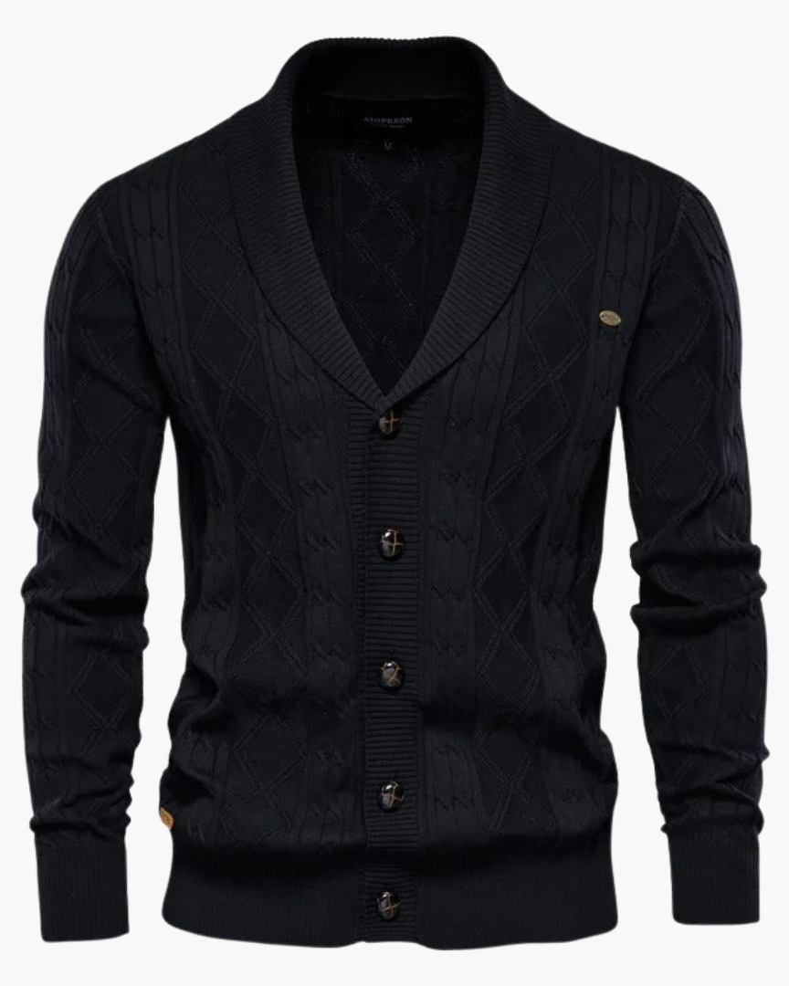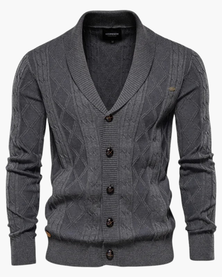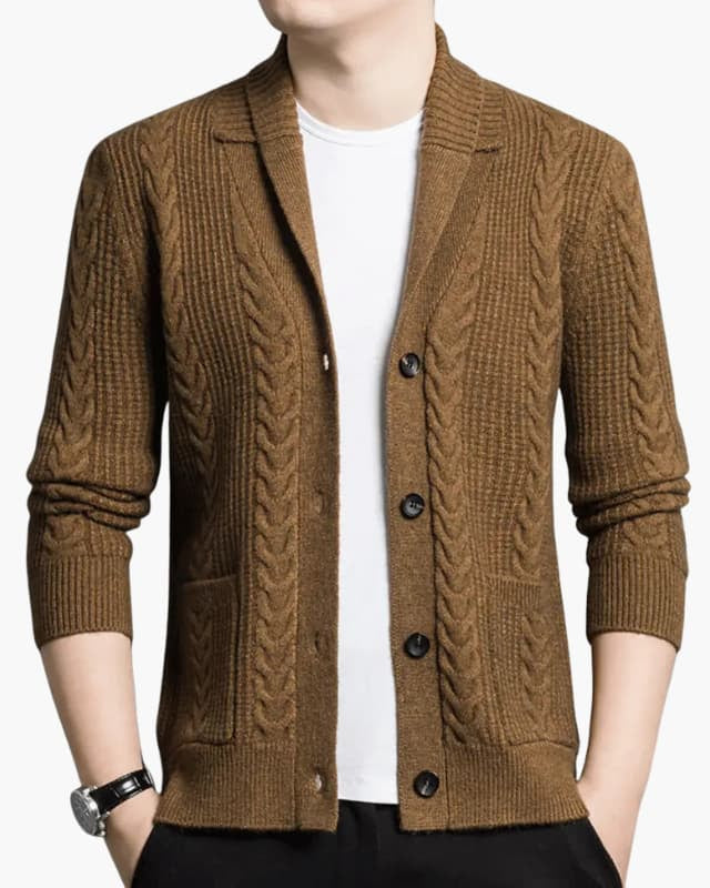 Men's Open Front Cardigan with Structured Stitch Detailing