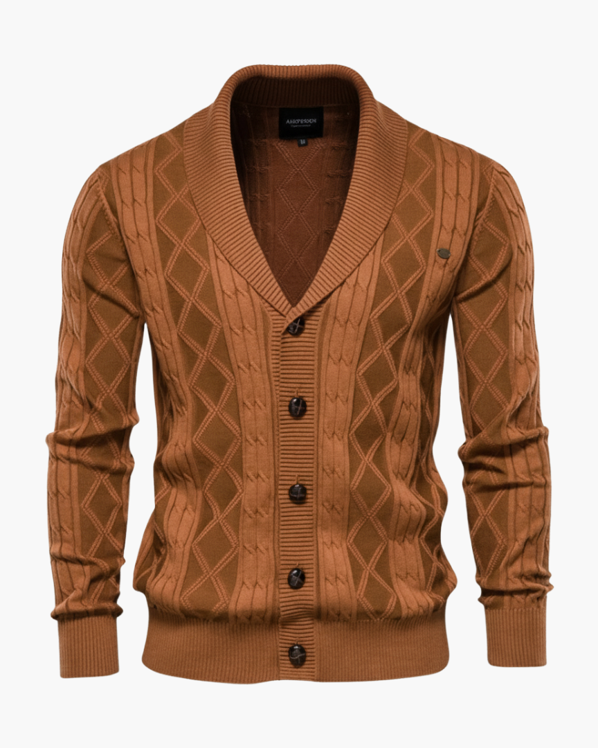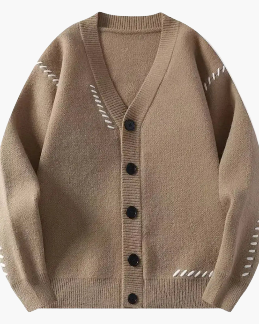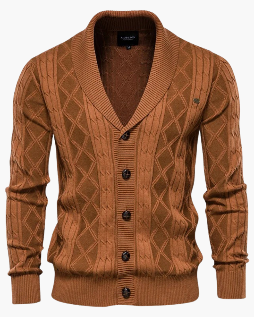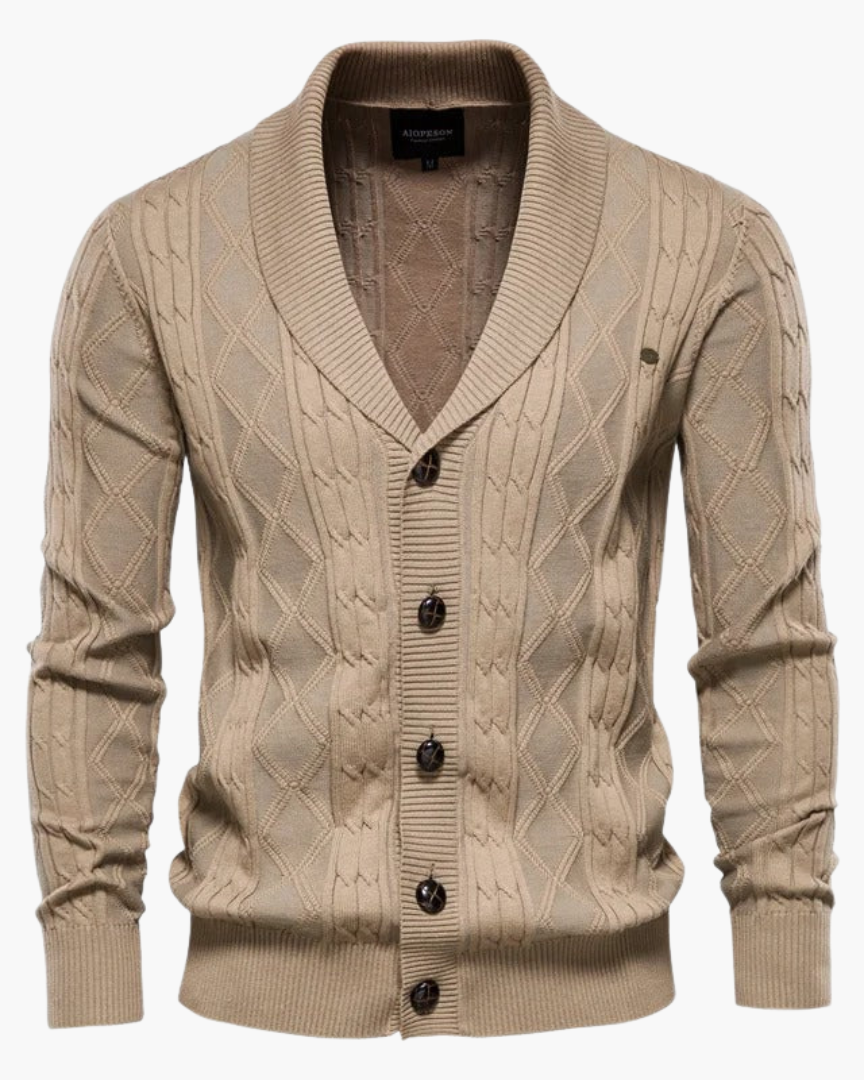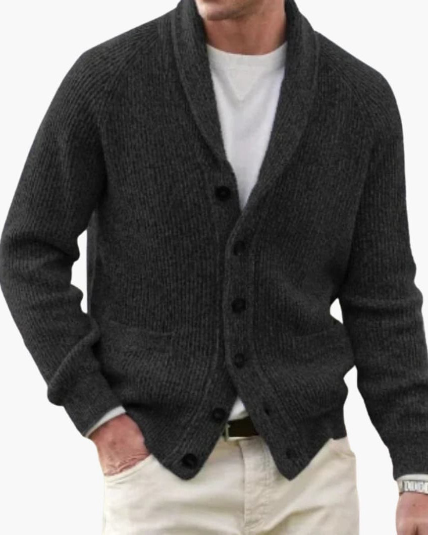 Men's Open Front Cardigan with Structured Stitch Detailing