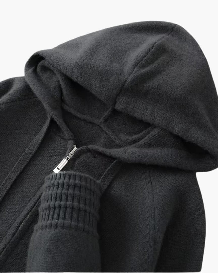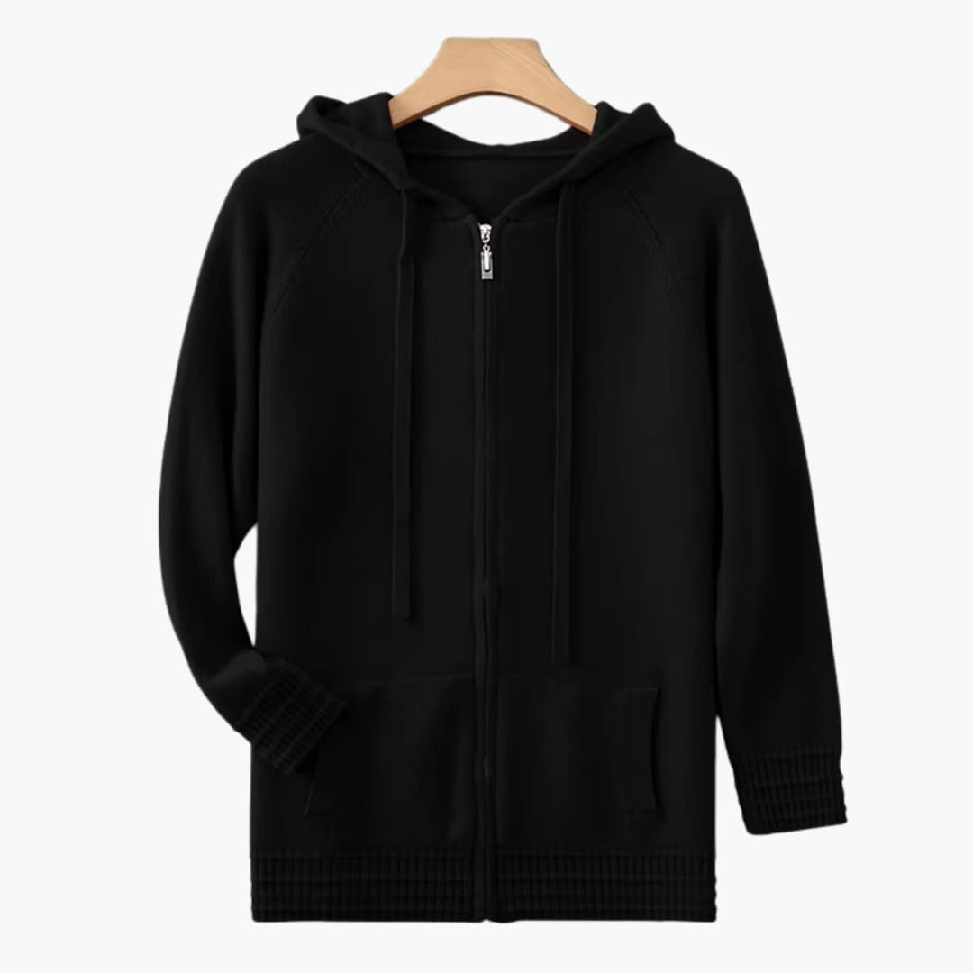 Sleeves: Long sleeves with ribbed cuffs maintaining the edge form.