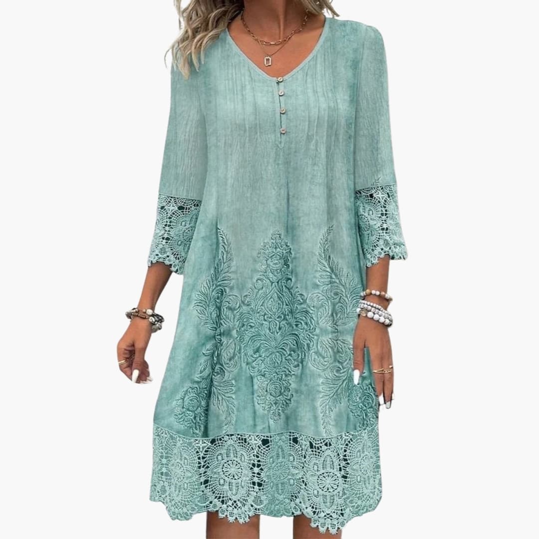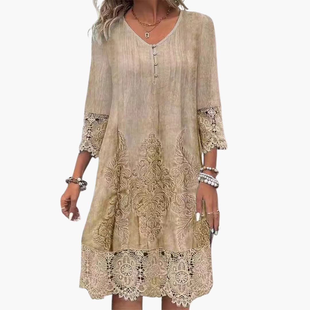 Women’s Embroidered Midi Dress with Short Sleeves and Defined Waist
